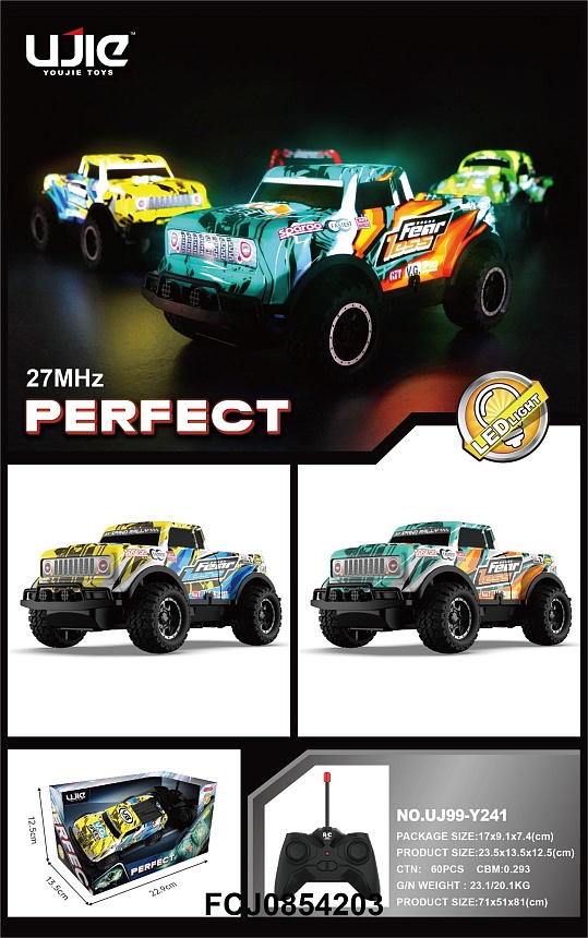 Опис Джип UJ99-Y241 радіокер. 27MHz, небит.корпус, гум.колеса, 2 кольори,світло,бат.,кор.,23,5-12,5-13см.
