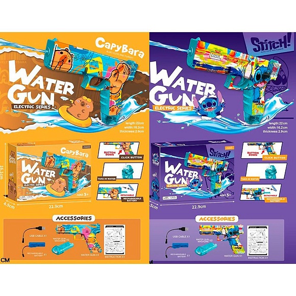 Водяний автомат 519-522-1 водяний пістолет,21см,акум,USBзарядне,2 види (LS,капібара)кор.
