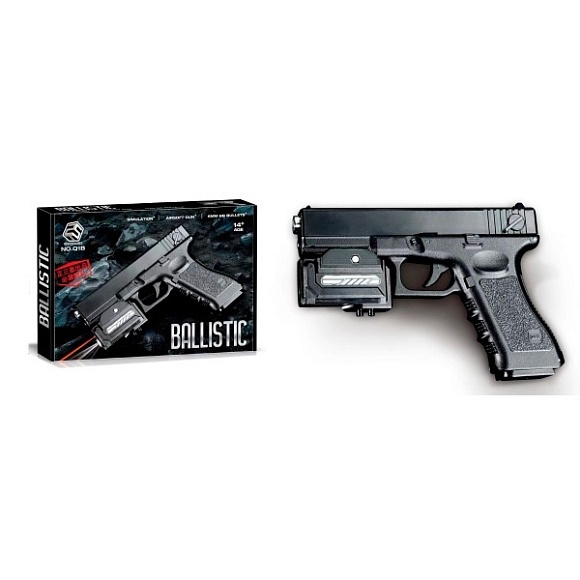 Пістолет Q1B 20см, пластикові кулі, світло, лазер,бат.(табл), кор., 24-16,5-4см