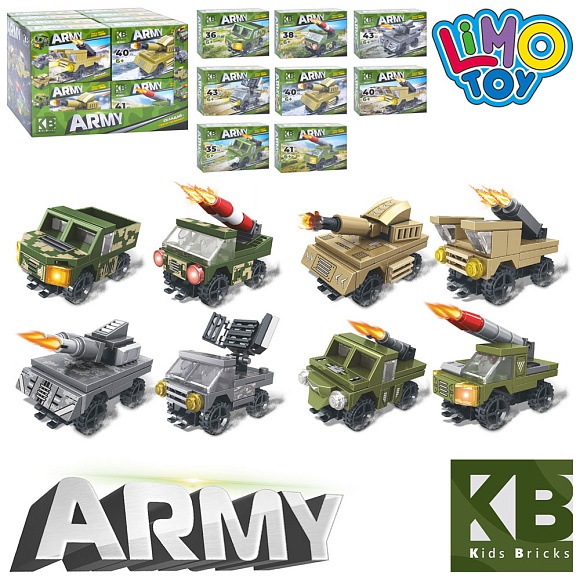 Опис Конструктор KB 2003 військовий техніка, від 35 до 45 дет., 8 видів, 16 шт. в диспл.,29,5-19,5-16,5см