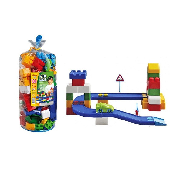 Опис Конструктор дитячий "Юні-блок" (108 дет.) шитий кульок