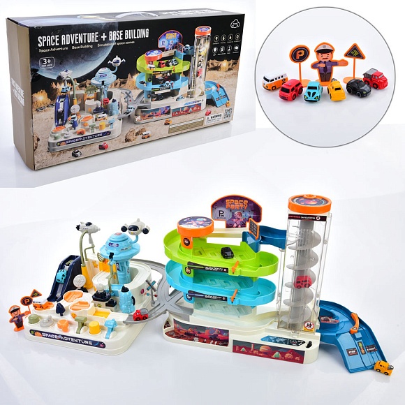 Гараж T915A космічна база, ліфт, рухливі деталі, машинки, муз., світло, бат., кор., 53,5-28-13,5 см.