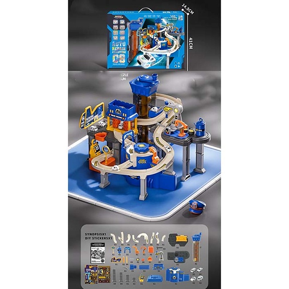 Опис Трек JP588-12 поліція, ліфт, рух.деталі, машинки 8 шт., муз., світло, бат., кор., 57,5-41,5-14,5 см.