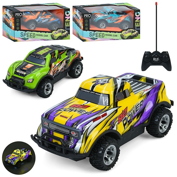 Опис Машина FC-801-03 радіокер., небит. корпус, гум. колеса,2 види по 2 кольори,світло,кор.,26,5-13-12см