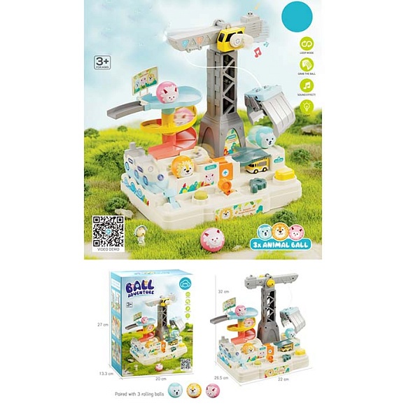 Опис Гараж t920a кран (механіч.), кульки 3 шт., рух. деталі, муз.,світло, бат.(табл.),кор.,20-27,5-13,5см