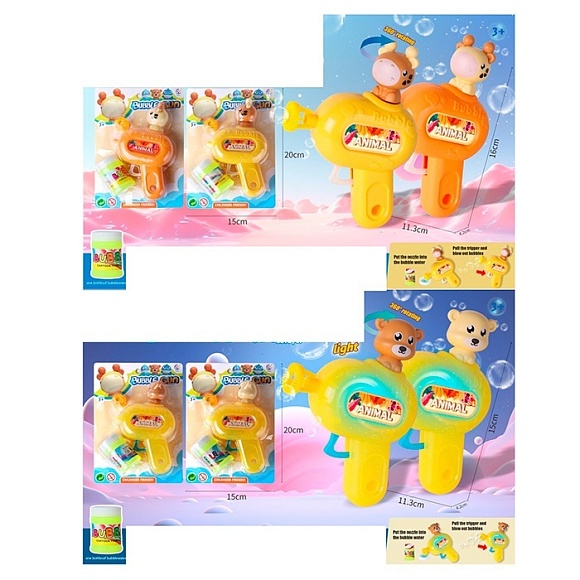 Мильні бульбашки 1142-1145 пістолет, запаска, 2 види по 2 кольори, лист, 15-20-4 см.