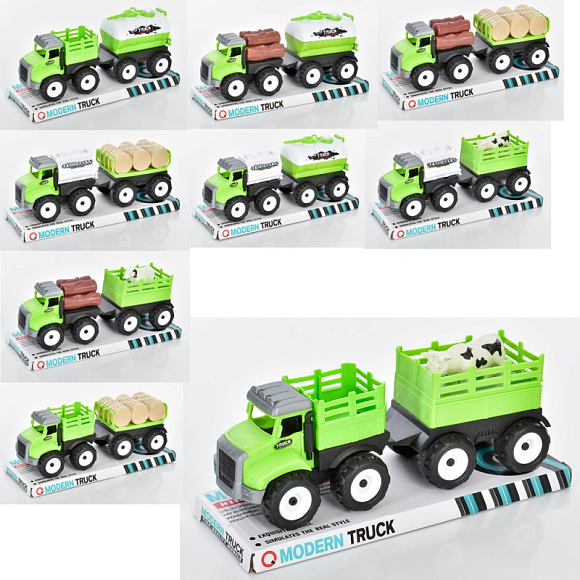 Опис Будтехніка 9932-2-3-4 інерц., з причепом, 9 видів, кор., 25,5-12-9 см.
