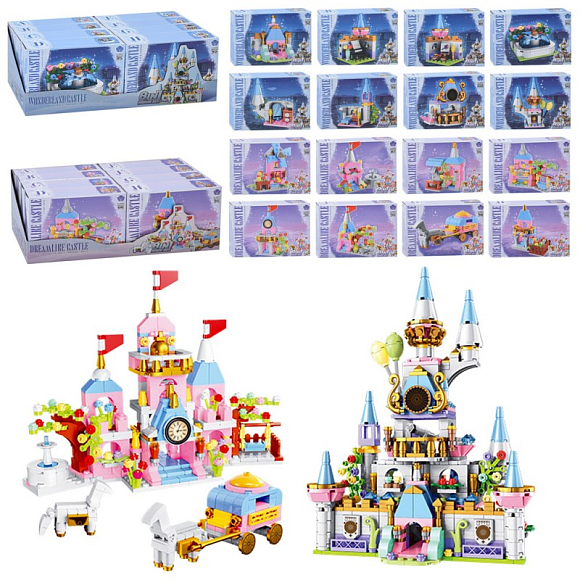 Опис Конструктор BB060E-BB064E рожева серія,замок принцеси,кор.,8в1,2 види диспл-в,8шт.в диспл.