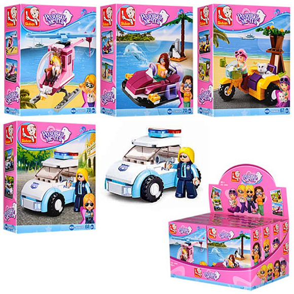 Конструктор SLUBAN M38-B0600 "Рожева мрія": транспорт, фігурки, 67 дет., 8 шт. в диспл. (4 види)