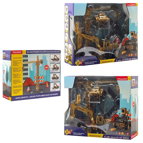 Реалістичні машинки АВТОКОНСТРУКТОР різної тематики, що збираються та розбираються за принципом конструктора за допомогою викрутки (входить до комплекту). У зібраному вигляді являють собою повноційні інерційні машинки для гри: з різноманітними рухомими деталями, світловими та звуковими ефектами.Інерційна машинка