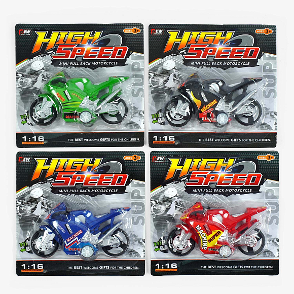 Опис Мотоцикл 396-21 b1 (576/2) 4 кольори, інерційний механізм, на листі, ВИДАЄТЬСЯ ТІЛЬКИ МІКС ВИДІВ