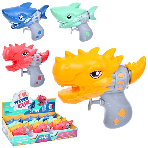 Водяний пістолет 385-AB динозавр, 12 шт. (4 види) в диспл., 42-11,5-22 см.